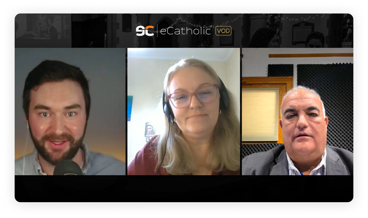 (From left to right: Mike Josephs, director of marketing at eCatholic; Monika Higueras-Gotkowsa from Goya Producciones; and Oscar Delgado from Candelaria ProIf you weren’t able to join us live—or if you’d like to revisit the conversation—you can watch the full webinar recording above.