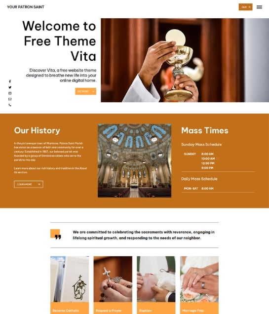 With Vita’s unique menu style, welcoming feature region, and vibrant color options, your website will exude a modern and graceful vibe that warmly brings your community together.